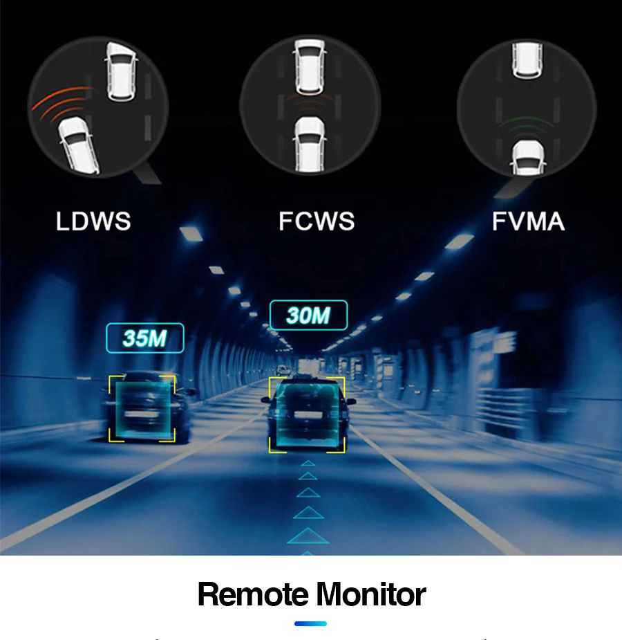 Предупреждение о столкновении (FCWS) Предупреждение предупреждение запускается, когда возможно Обнаружение столкновения в реальном времени на основе записи видео.