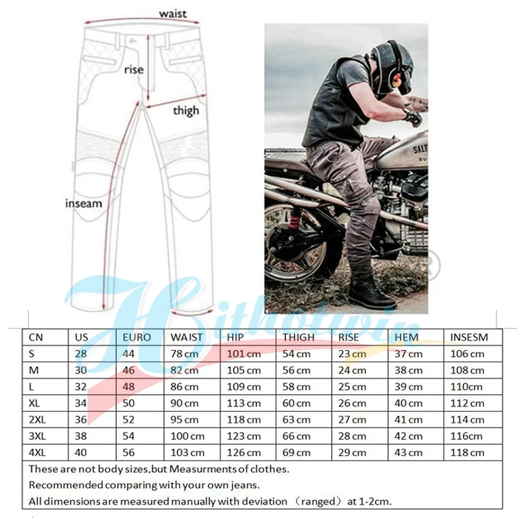 Размер; S; США: 28; Евро: 44; Талия: 78 см; Бедра: 101 см; Бедра: 54; Рост: 23; Подол: 37; Длина брюк: 106 см; Размер; M;US:30; Евро: 46; Талия: 82 см; Бедра: 105 см; Бедра: 56; Рост: 24; Подол: 38; Длина брюк: 108 см; Размер; L; США: 32; Евро: 48; Талия: 86 см; Бедра: 109 см; Бедра: 58; Рост: 25; Подол: 39; Длина брюк: 110 см; Размер; XL; США: 34; Евро: 50; Талия: 90 см; Бедра: 113 см; Бедра: 60; Рост: 26; Подол: 40; Длина брюк: 112 см; Размер; 2XL; США: 36; Евро: 52; Талия: 95 см; Бедра: 118 см; Бедра: 63; Рост: 27; Подол: 41; Длина брюк: 114 см; Размер; 3XL; США: 38; Евро: 54; Талия: 100 см; Бедра: 123 см; Бедра: 66; Рост: 28; Подол: 42; Длина брюк: 116 см; Размер; 4XL; США: 40; Евро: 56; Талия: 103 см; Бедра: 126 см; Бедра: 69; Рост: 29; Подол: 43; Длина брюк: 118 см; Это не размеры тела, а измерения одежды. Рекомендуется сравнить с вашими джинсами. Все размеры измеряются вручную с отклонением (в диапазоне) на 1-2 см.