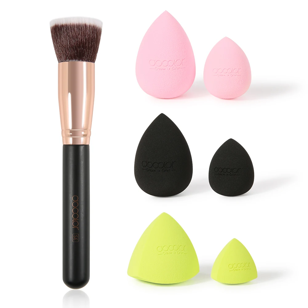 Docolor кисть для тонального крема с плоским верхом, кисть Кабуки с 6 шт., неоновая губка для макияжа, спонж, профессиональная косметика, Кисть для макияжа