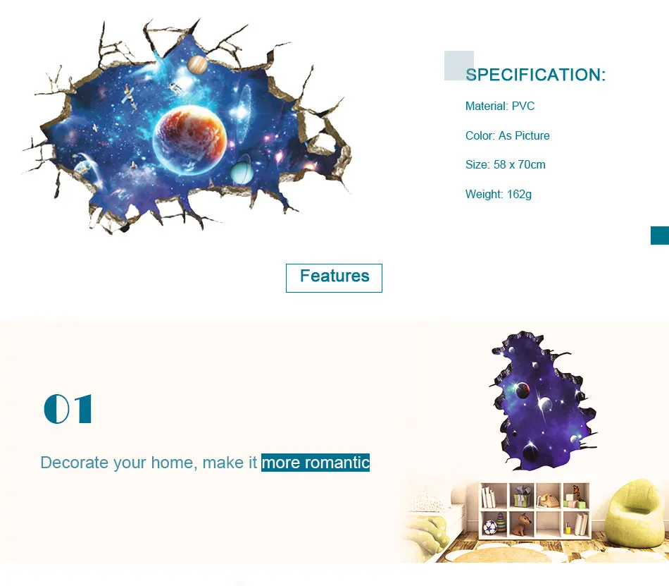 3D Наклейка на стену разбитая Вселенная съемное настенное искусство для гостиной пол для дома DIY Украшение галактика пейзаж Декор для комнаты