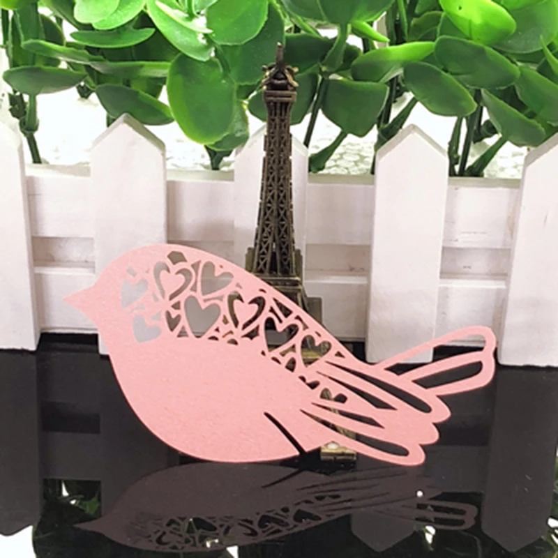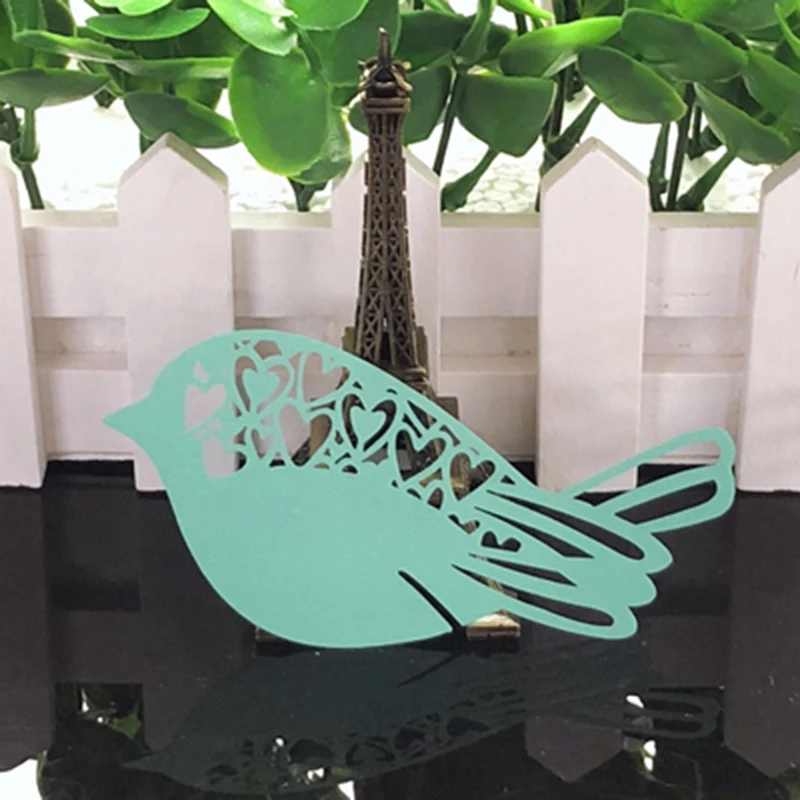 50 шт., птицы, стол с именем, место, эскорт, чашка, карта для вина, карточки на бокал, бумажные карты «сделай сам», бумажные лазерные вырезки, свадебные украшения, праздничные атрибуты