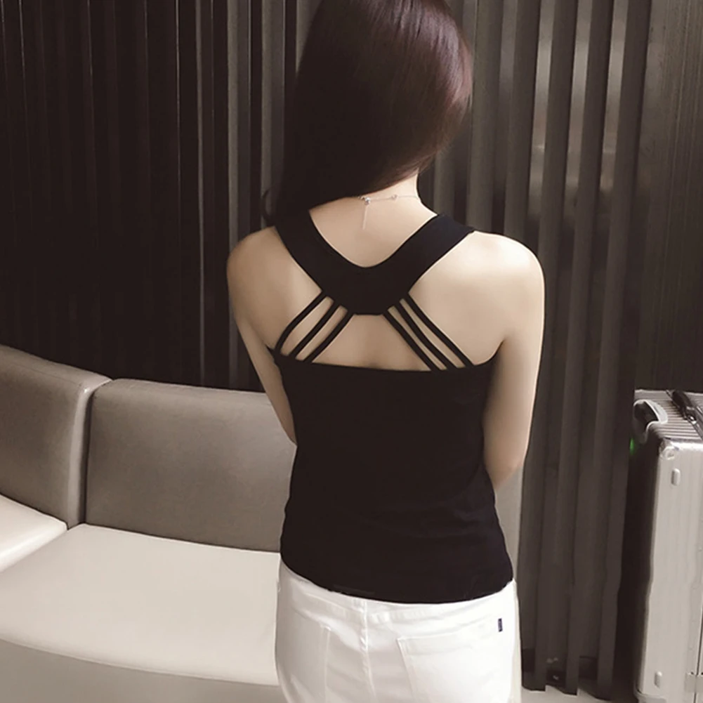 Sexy Women Summer Solid Color Sleeveless Back Strappy Tank Top Bottoming Vest