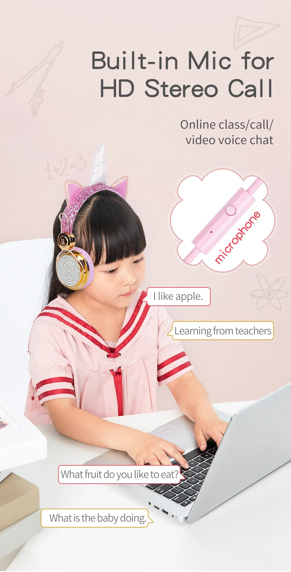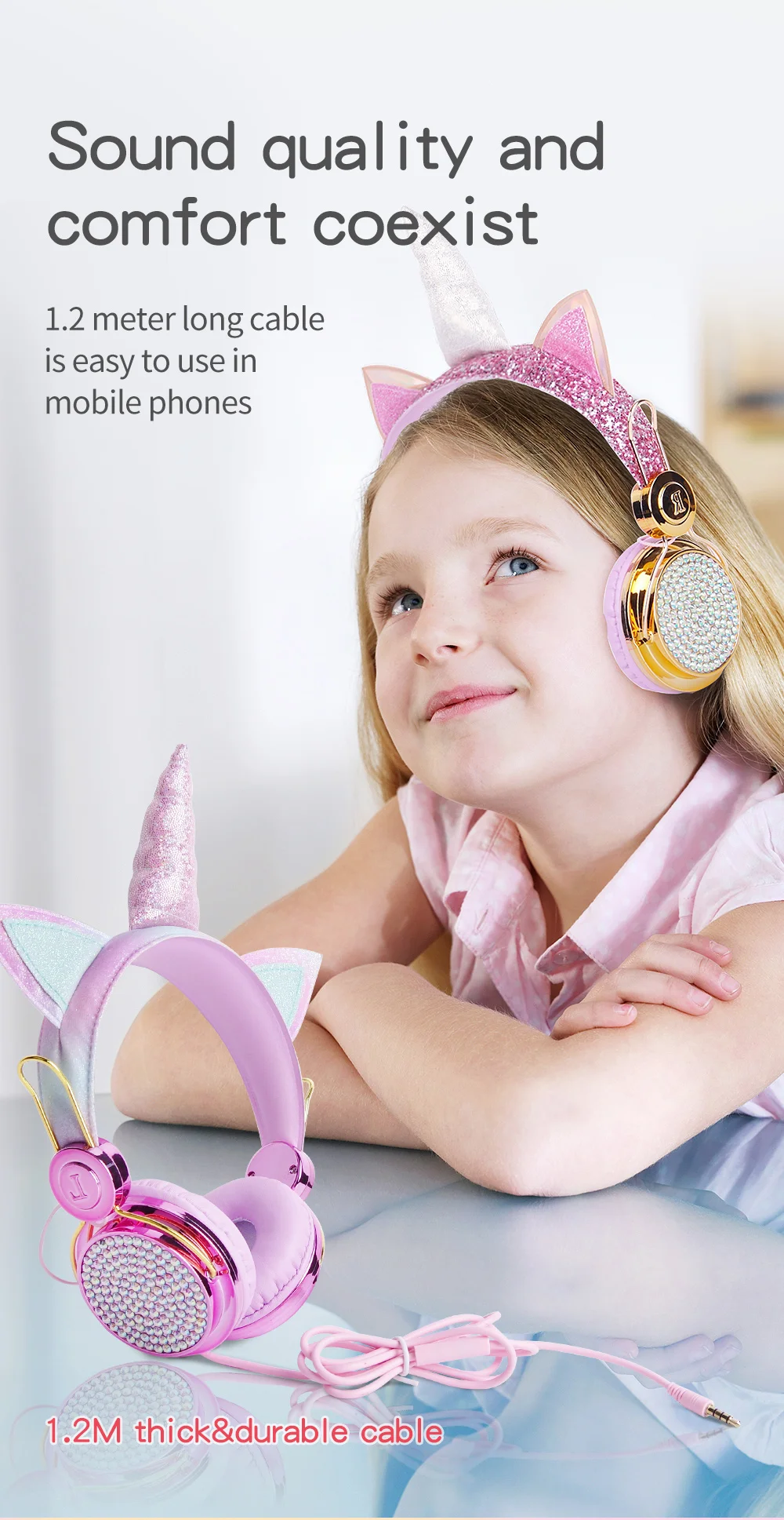 Золотой Единорог милые наушники 3,5 мм проводные с микрофоном девушки музыка стерео наушники компьютер телефон обучения геймер гарнитура