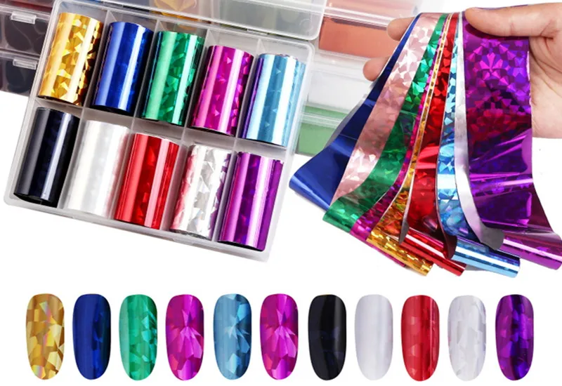 LOVCARRIE 10 рулонов/набор голографические наклейки для переноса ногтей Фольга наклейка для ногтей лазерное зеркало блестящие маникюрные аксессуары для ногтей наклейки для украшения ногтей