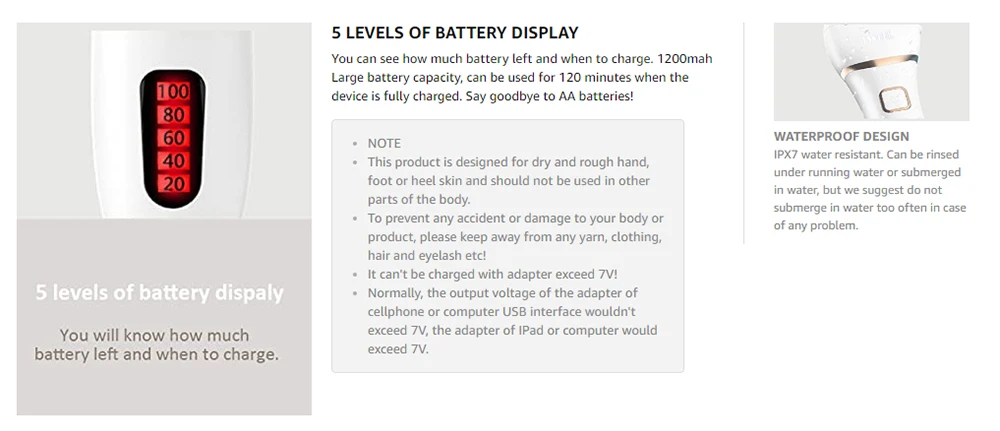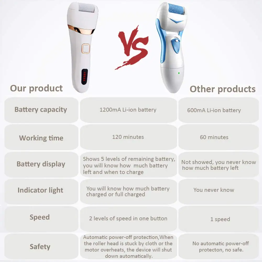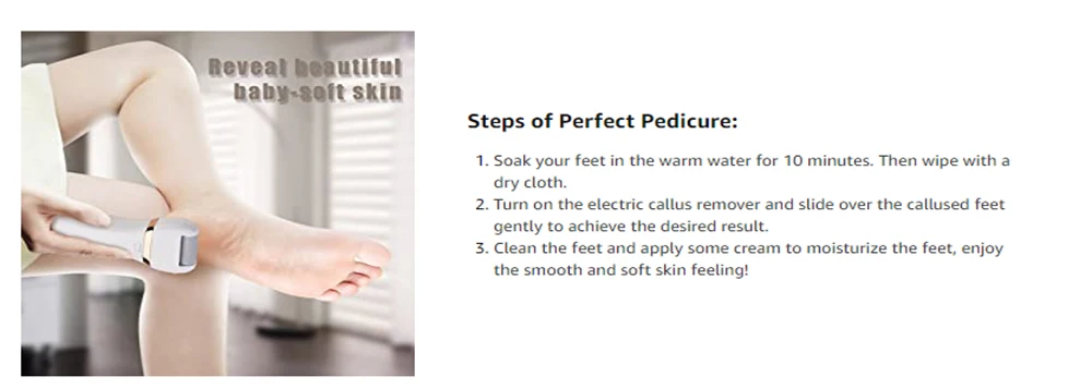 2. Шлифовальная головка подходит только для твердой и толстой омертвевшей кожи, такой как каблук, пожалуйста, не используйте этот продукт в обычных частях кожи