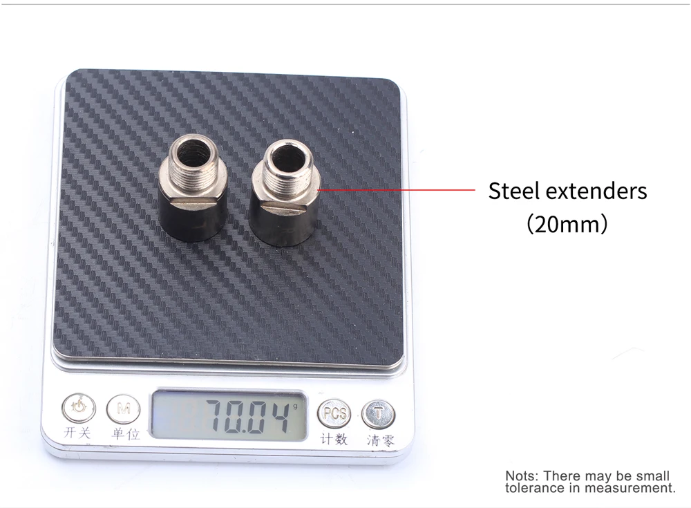 Вес удлинителей оси педали с шайбами составляет всего 27,4 г (16 мм)/31,6 г (20 мм).