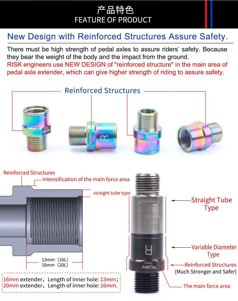 Инженеры по рискам используют новый дизайн «усиленной конструкции» в основной области Экстендера педали оси, который может дать более высокую прочность езды для обеспечения безопасности.