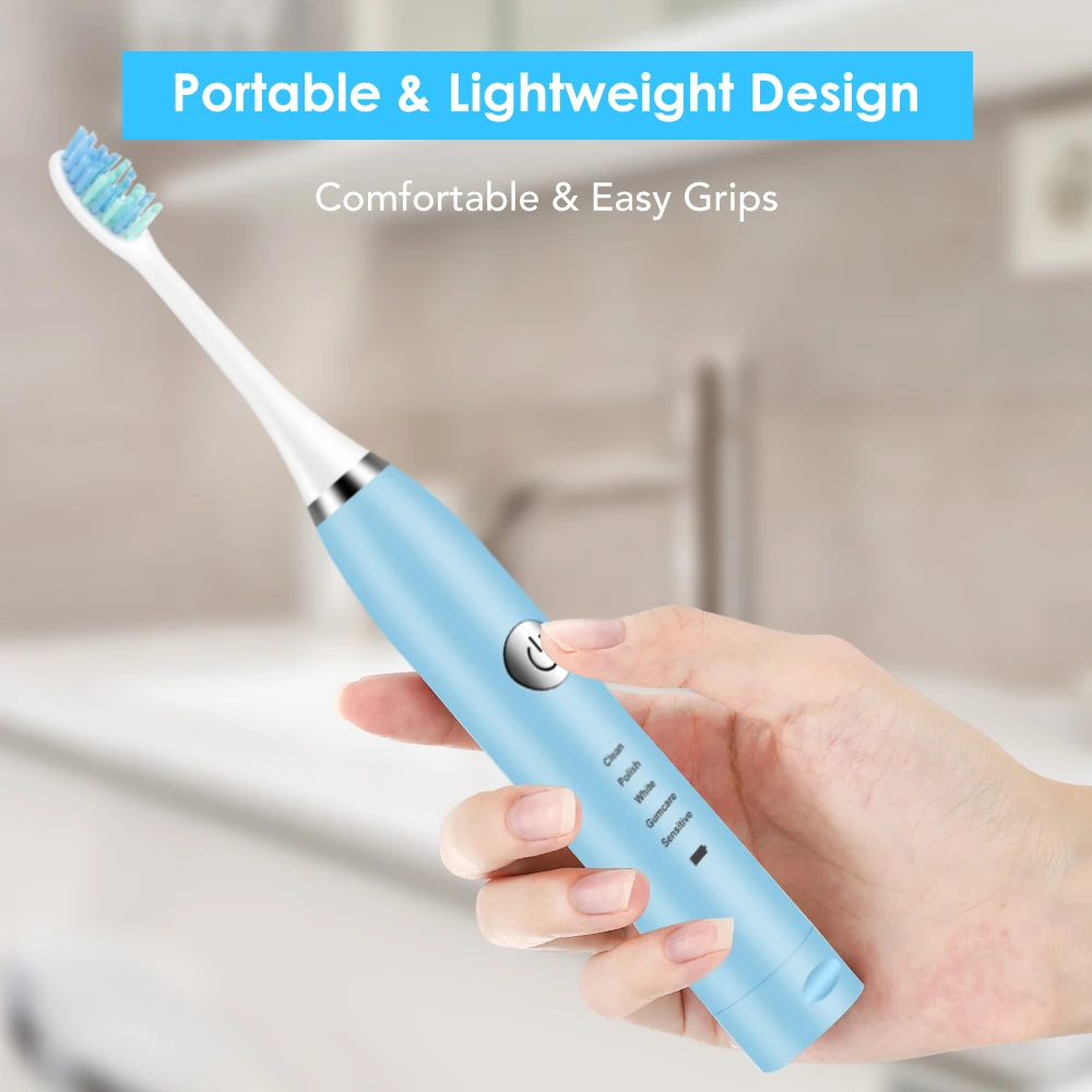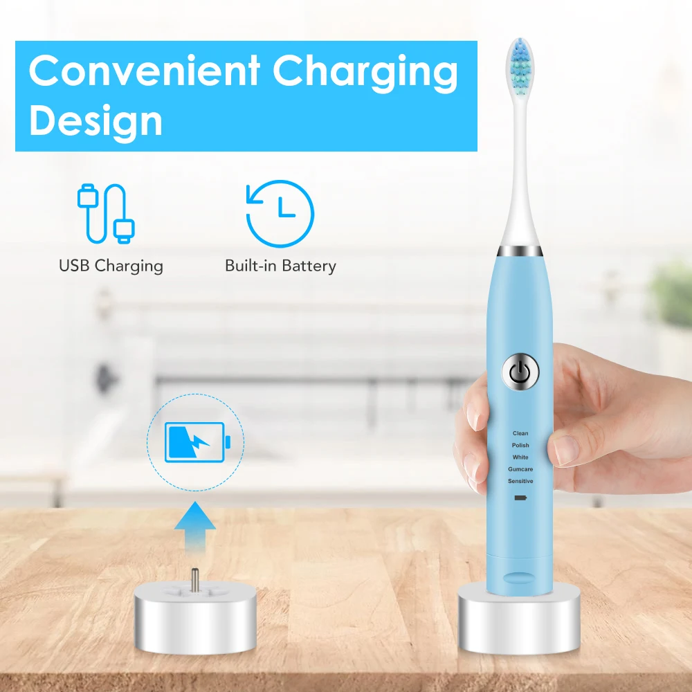Портативная умная электрическая звуковая вибрационная зубная щетка 5 регулируемых режимов Водонепроницаемая перезаряжаемая USB электрическая зубная щетка отбеливание зубов Уход за полостью рта семейный уход за зубами
