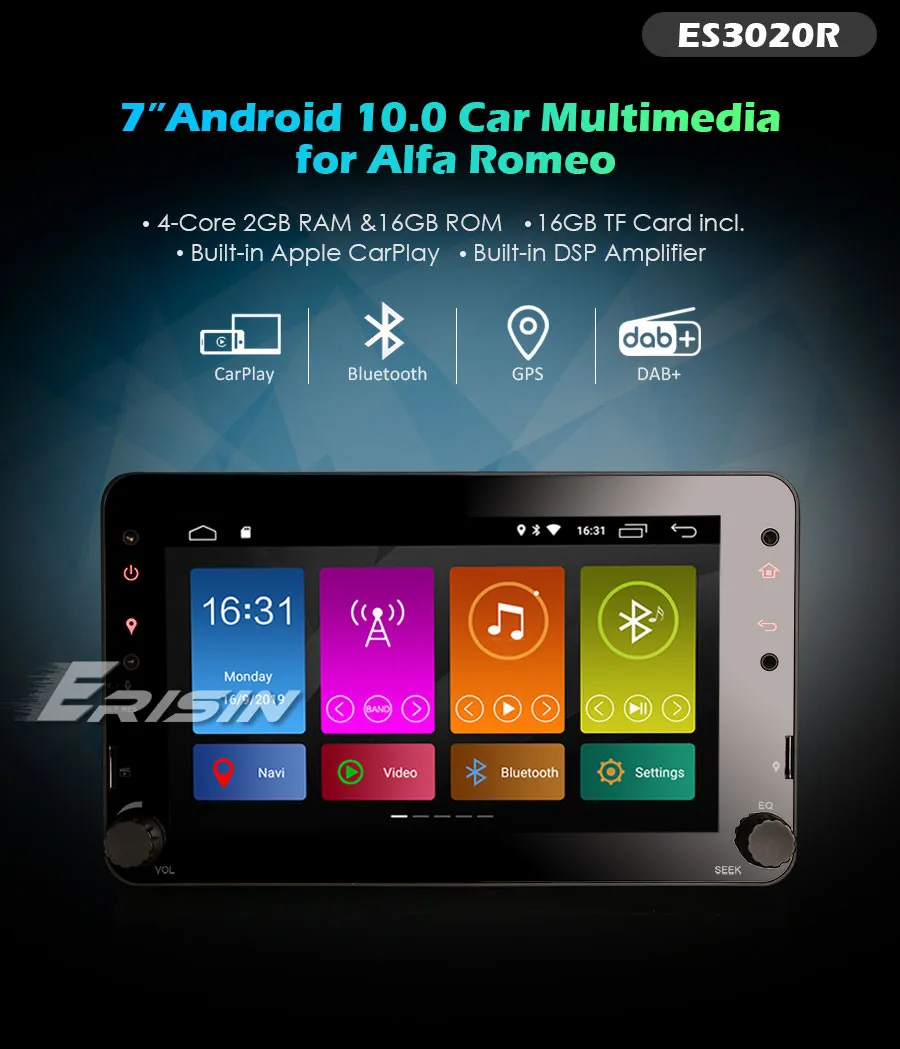 ES3020R 7" Quad-Core Capacitive Android 10.0 Car Multimedia Player GPS WiFi 4G TPMS DVR DAB+...