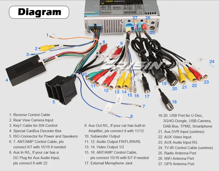 - Function: Can be connected with U-Disc, 3G/4G Dongle, CarPlay Dongle, TPMS-Device, DVR-Camera, DAB+ Box, Smartphone etc.