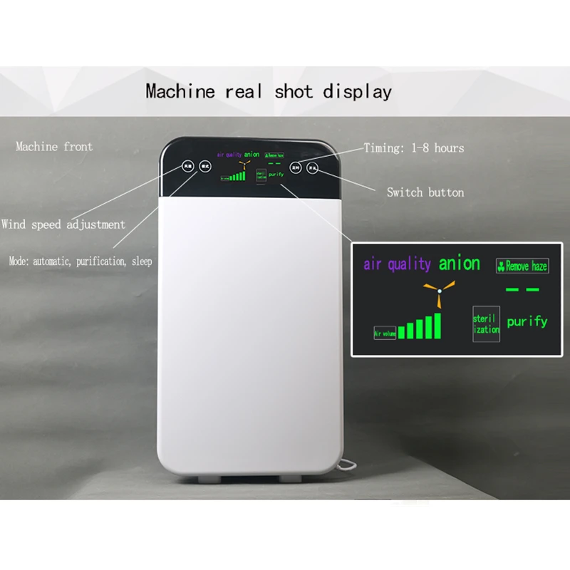 * Трехслойный Композитный фильтр Он состоит из 3-в-1 Композитный фильтр. Ранний фильтр, hepa, активированный уголь, холодный катализатор, отрицательный ион Композитный материал, что он удаляет 99.99% от пыли, пыльцы, дыма, запаха, плесени и шерсти домашних животных; Фильтры частиц как малых по мере того как 0,3 мкм и более крупные и фильтрует загрязнение воздуха PM 2,5. Встроенный высококачественный генератор отрицательных ионов, который может удалить пыль в воздухе, взвешенные частицы, статическое электричество. * Супер тихая технология Используется Высококачественный вентилятор и внутренняя циркуляционная технология шумоподавления, чтобы обеспечить спокойный сон окружающей среды. * Многофункциональные опции Три режима регулировки (режим сна, режим очищения, автоматический режим), выберите, как вам нравится, что обеспечивает здоровую жизнь. * Низкий уровень шума, низкое энергопотребление, больше экономии энергии Характеристики: Емкость очистки: 180 кубических метров в час Площадь очистки: 41 - 60 кв. М Номинальная мощность: 35 Вт Номинальный вход: 220 В переменного тока Номинальная частота: 50 Гц/60 Гц Размер изделия: 33,5x19x56 см Вес: 4,5 кг (фильтр входит в комплект) Посылка включает в себя: 1 шт. очиститель воздуха 1 шт. встроенный фильтр 1 шт. инструкция 1 шт. пульт дистанционного управления Иллюстрированное Описание