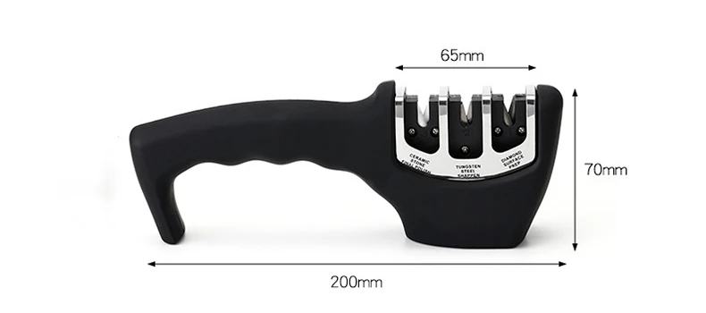 Название: точилка для ножей 3 в 1 Материал: АБС + нержавеющая сталь + керамика Вес: 202 г Размер: 200*70 мм Использование: заточите нож.