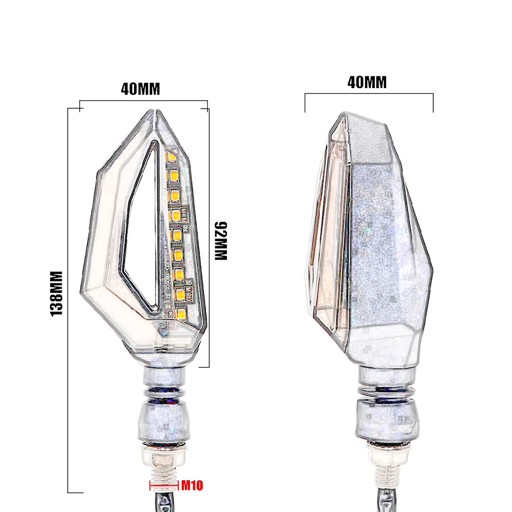 1. Состояние: абсолютно новый 2. Может использоваться как передние или задние поворотники 3. Особая особенность: простая установка 4. Светильник: -Сигнал поворота-желтый светильник -Бег-синий/белый/красный светильник. 5. Тип светильника: яркий светодиодный светильник (12 шт. 2835SMD светодиодный светильник). 6. Материал: пластик + металл + резина. 7. Напряжение: DC12v 8. Длина свинца: 23 см. 9. Используется: Универсальный подходит для всех мотоциклов и мотоциклов, скутеров с болтом 10 мм. 10. Цвет корпуса: черный