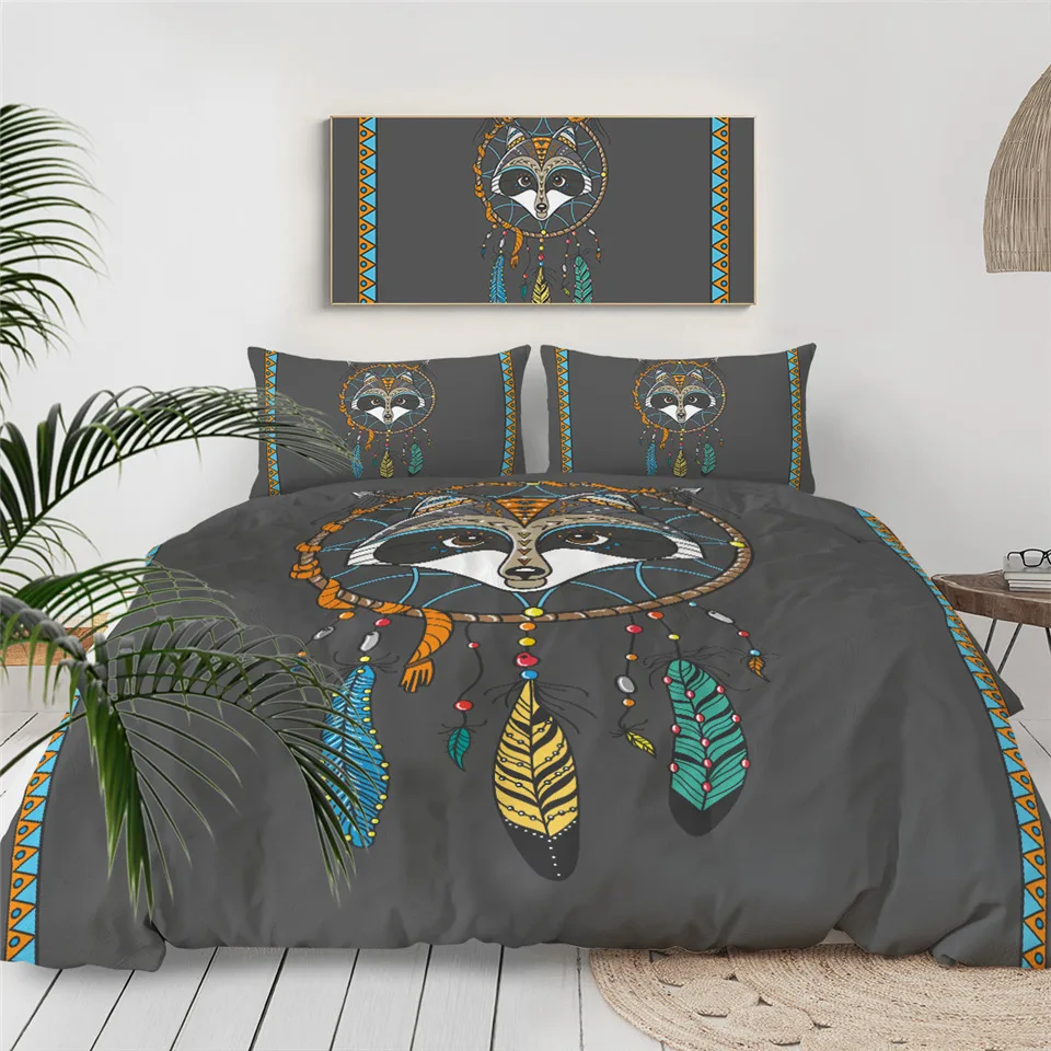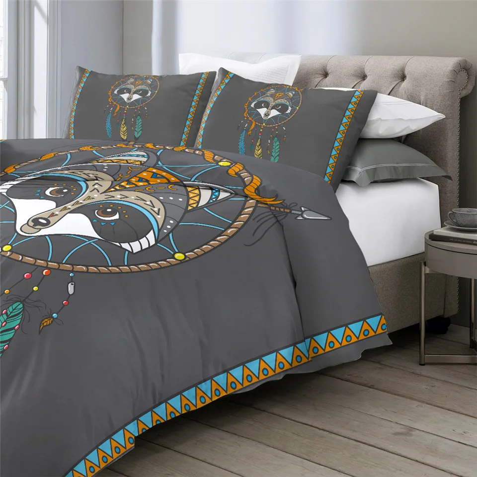 Item Name:Bedding SetPacking List:1* Duvet Cover + 2* Pillow CasesFabric:PolyesterSeason:Spring, Summer, Autumn, WinterFeatures:Tribal bedding set with totem animal and dreamcatcher pattern.BeddingOutlet Reminder:1) If you need extra sheet to match, please contact us.