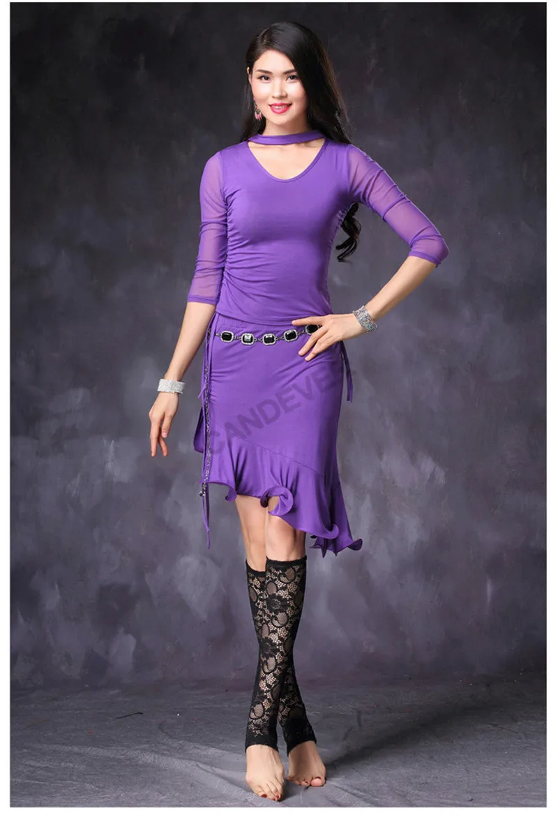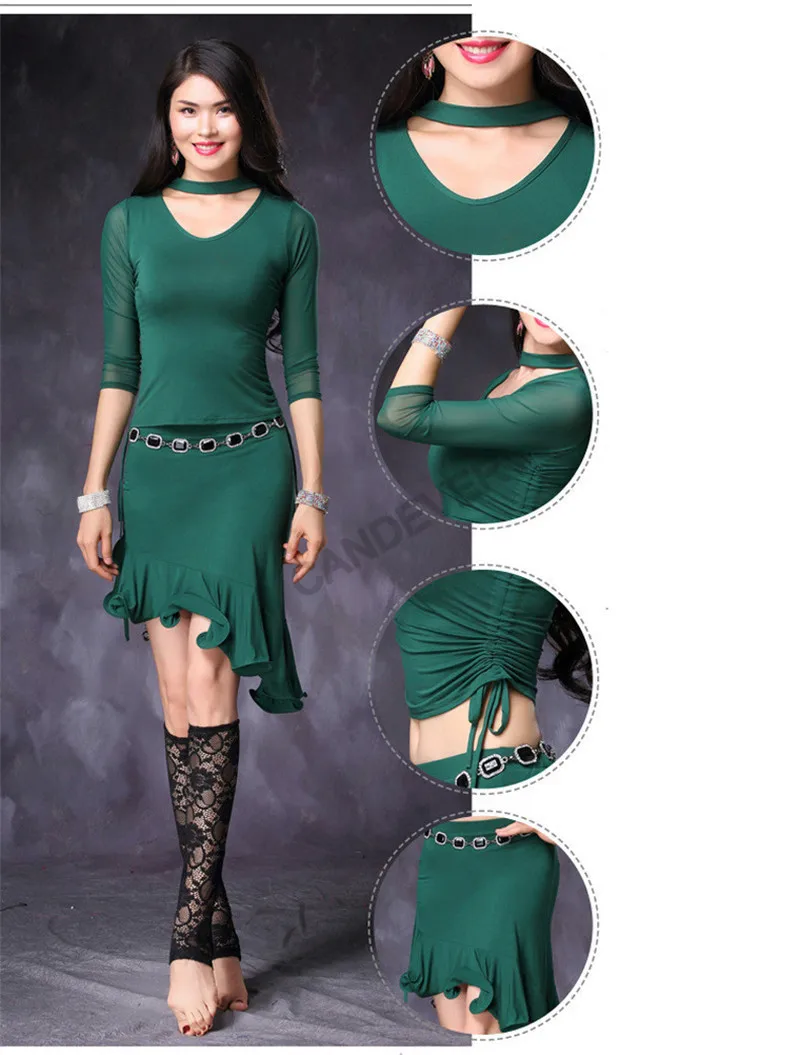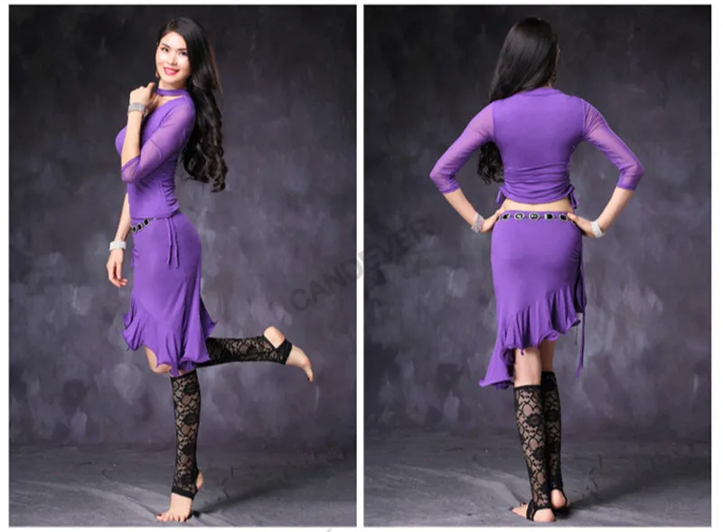 Женский костюм для танца живота для взрослых, комплект одежды для занятий в восточном стиле с длинными рукавами, сетчатый топ, блузка, юбка, одежда, костюм, наряд