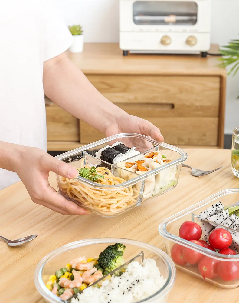 1. Идеальный стеклянный контейнер для приготовления еды-Встроенные разделители позволяют отделить еду от пищи для приготовления еды и контроля порций.