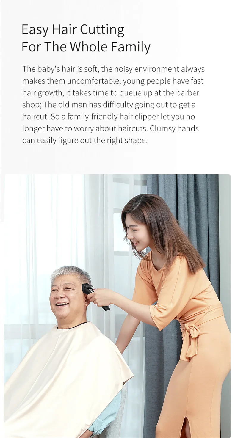 Волосы ребенка мягкие, шумное окружение всегда делает их неудобными, у молодых людей быстрый рост волос, требуется время, чтобы стоять в очереди в парикмахерской. У старика возникают трудности с тем, чтобы сделать стрижку. Поэтому семейная машинка для стрижки волос позволит вам больше не беспокоиться о стрижках. Неуклюжие руки могут легко определить правильную форму.