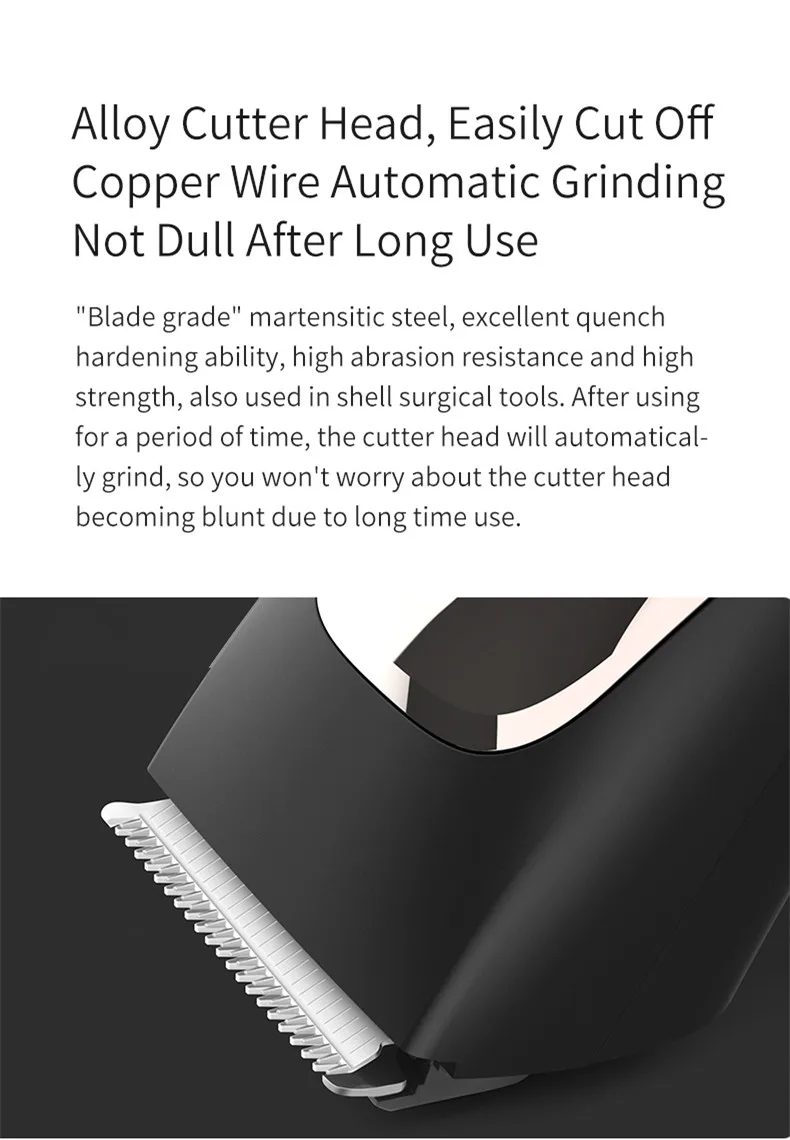 1. Любимый профессиональным парикмахером 2. Мощный 7300 об/мин, больше не беспокойтесь о застрявших волосках, чтобы дети плакали 3. Режущая головка из сплава, легко отрезать медную проволоку, автоматическое шлифование, не тусклый после длительного использования 4. R-образная круглая головка, острый, но безопасный 5. 20-сегментная регулировка длины, легко для начинающих родителей 6. ESM Интеллектуальная защита от застревания волос, двойная защита, двойная энергоэффективность 7. Полная зарядка может использоваться в течение 4 месяцев 8. USB интерфейс, используемый во время зарядки 9. Легкая резка волос для всей семьи