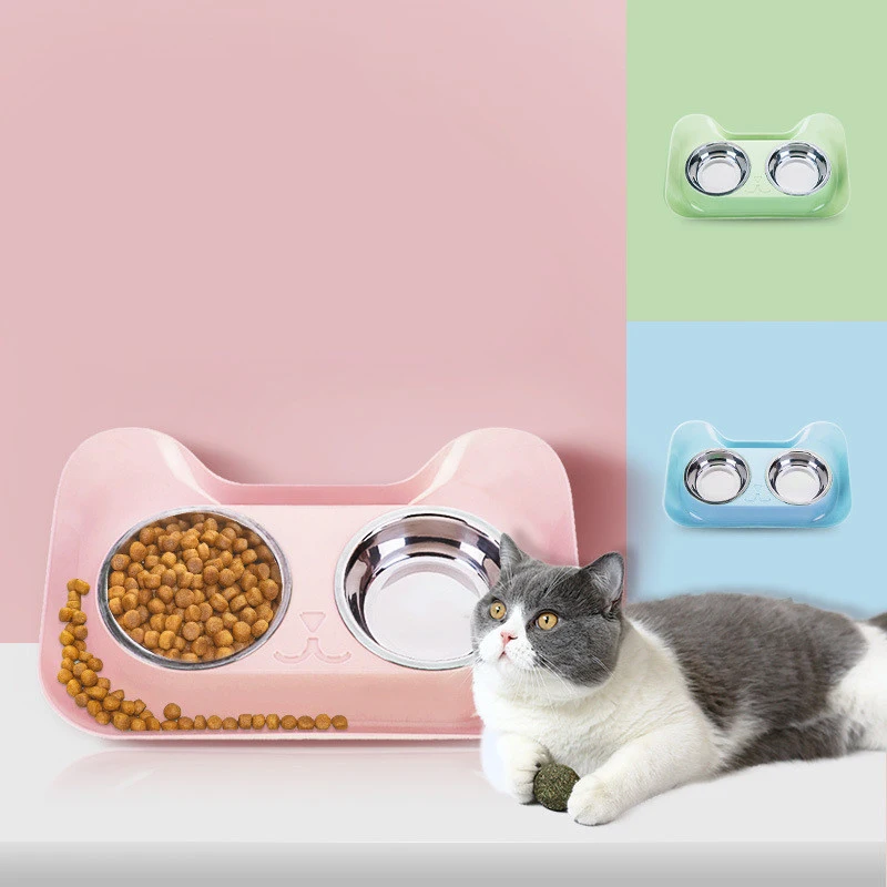 2020 новая милая миска для кошек двойного назначения, Нескользящие миски для домашних животных, миски для собак, двойная миска для домашних животных, вода для кошек, повышенная подача