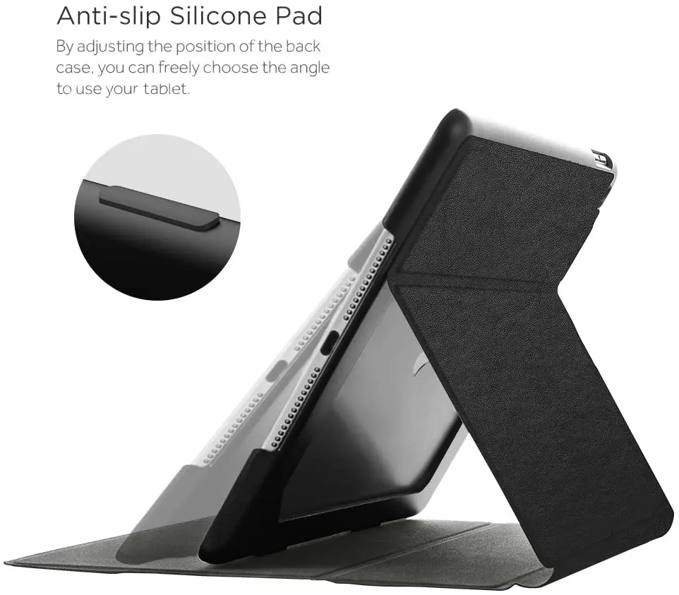 Для iPad 9,7 2018/2017--- Обеспечивает 360 ° защита для вашего нового Apple iPad 2018/2017 9,7 дюймов (номер модели:A1893 / A1954 / A1822 / A1823).Многофункциональная функция подставки--- Противоскользящая Силиконовая накладка против проскальзывания и делает ее стабильной. Предлагает многоугольные положения стоя для ввода и просмотра фильмов.Функция автоматического пробуждения/сна--- Встроенное магнитное кольцо автоматически позволяет вашему устройству спать при закрытии и снова включается при открытии.Точные вырезы--- Обеспечивает легкий доступ ко всем портам, кнопкам и элементам управления, как будто чехол отсутствует.Высококачественная искусственная кожа--- Высококачественная искусственная кожа снаружи и мягкий интерьер обеспечивают отличную защиту от повседневного использования.