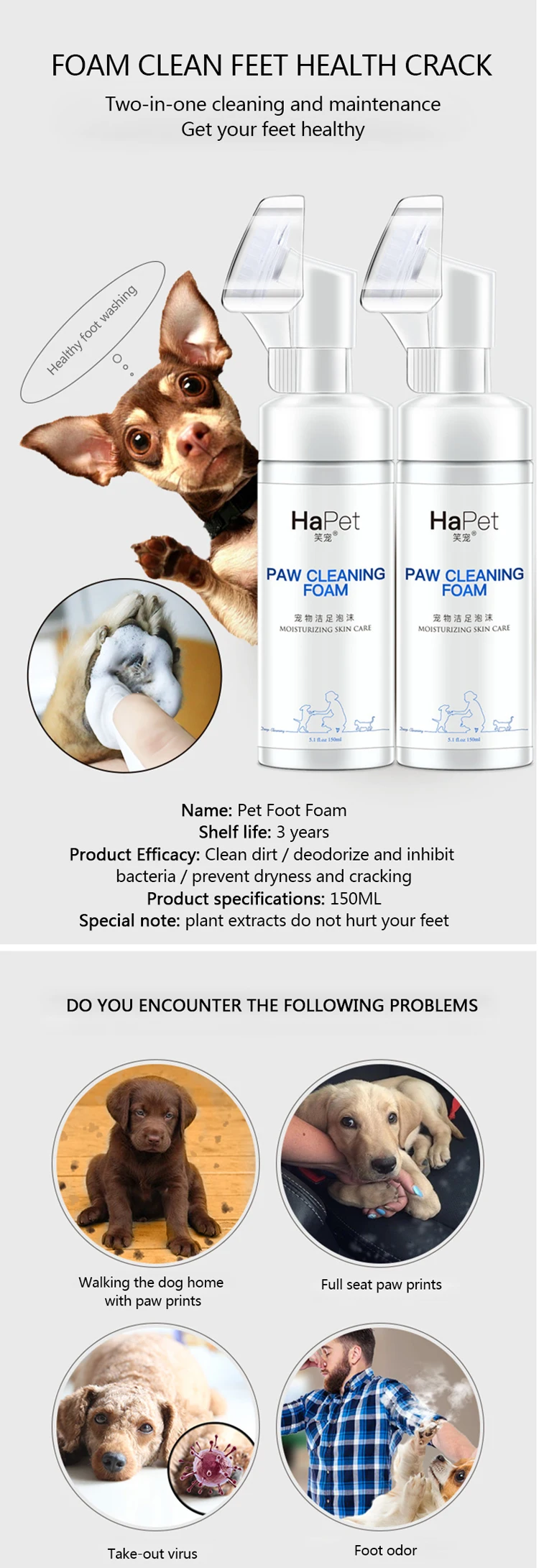 Пена для очистки ног Два в одном Чистка и обслуживание Получите здоровья ваших ног Название: очищающая пена для домашних животных Срок годности: 3 года Эффективность продукта: очистка грязи/дезодорирование и подавление бактерий/Предотвращение сухости и растрескивания Характеристики продукта: 150 мл Специальное примечание: растительные экстракты не травмируют ноги