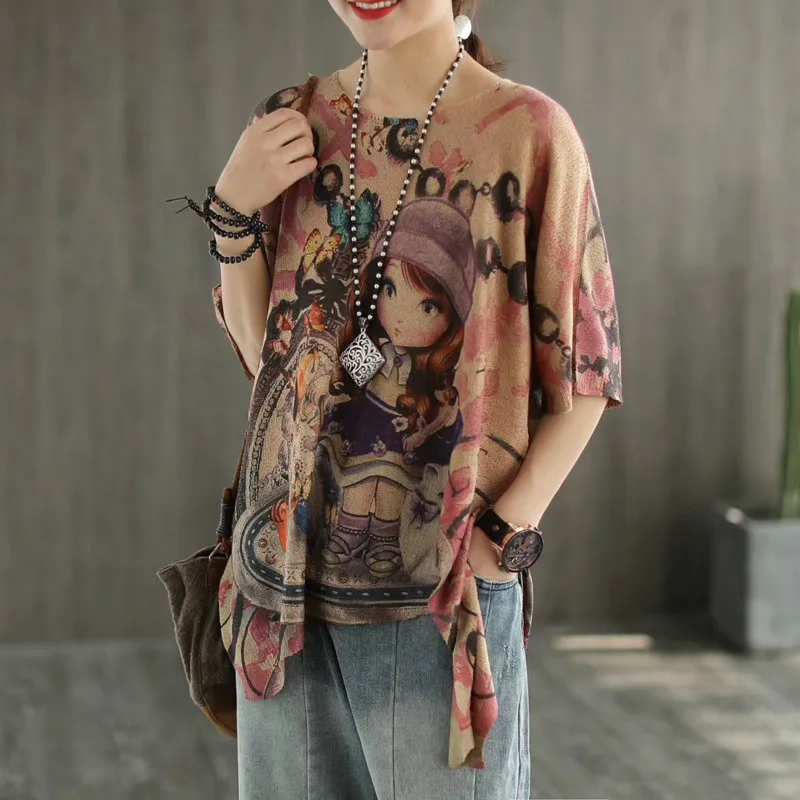 Корейские Модные Винтажные Повседневные свитера с принтом