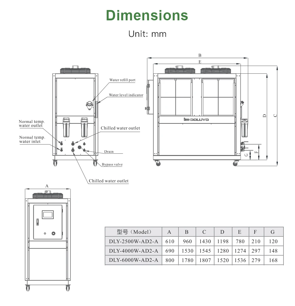 1. Все компоненты охлаждения являются лидирующим брендом в отрасли, скорость вращения вентилятора регулируется, значение электрического расширения для регулирования энергии.