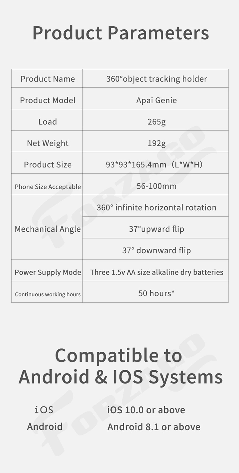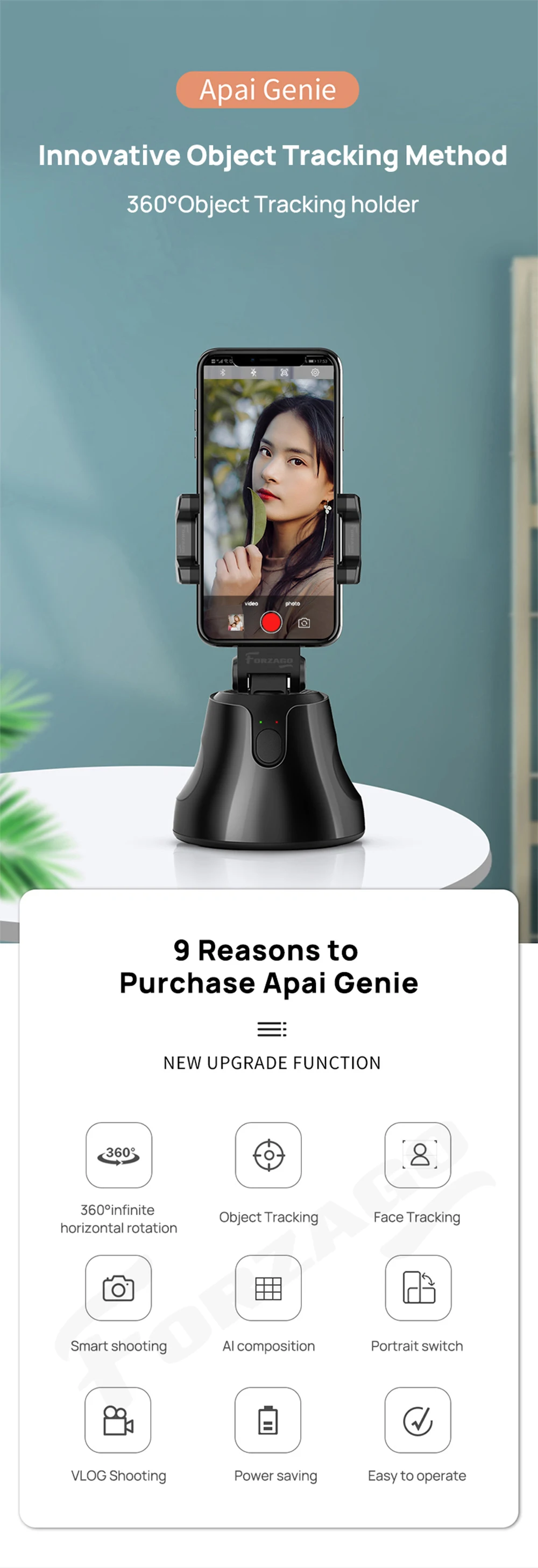 Держатель для отслеживания объекта 360 ° Поддержка приложения: Apai Genie Funtion