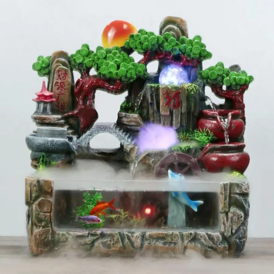 Rockery водный фонтан водопад бонсай с распылителем рыбный контейнер Крытый фэншуй, украшение интерьера