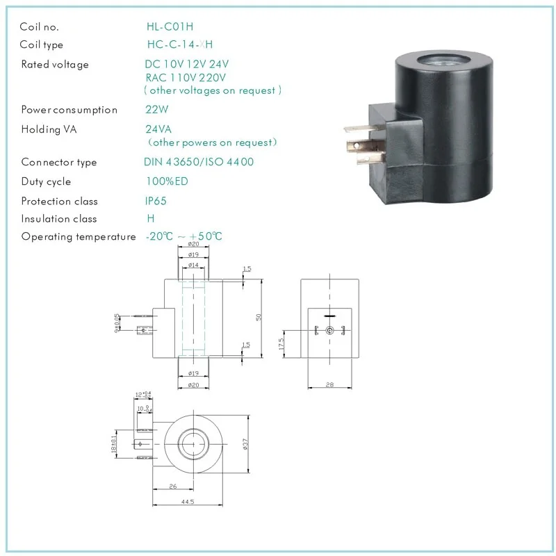 HC-C-14-H соленоидный картридж valvevs DC 10 в 12 В 24 В Диаметр 14 мм разъем DIN цилиндрическая Электромагнитная катушка