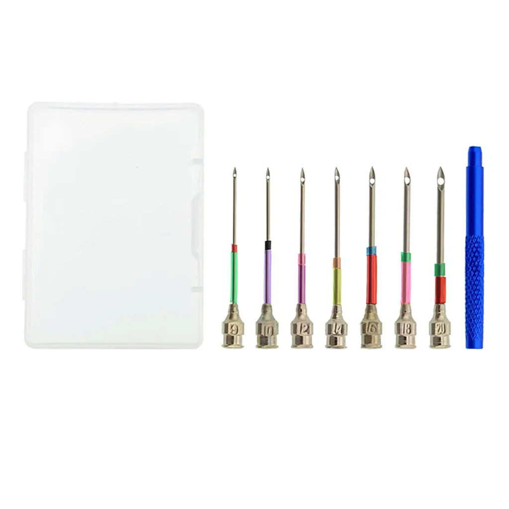 Иголки для перфоратора имеют цветную кодировку, Взаимозаменяемые и поставляются с различными размерами, чтобы сделать петли разных размеров и использовать различные веса и типы волокон.