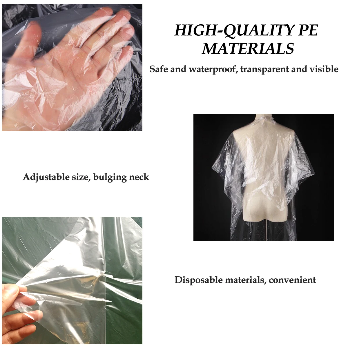 Тонкий и легкий дизайн, Не проницаемый, без запаха. Высококачественный ПЭ, изготовленный из новых материалов, водонепроницаемый, прозрачный и видимый, регулируемый размер, свободная Регулировка эластичности, без шеи.