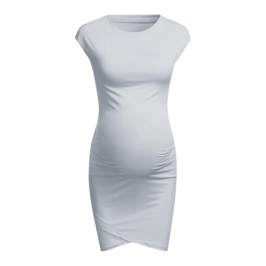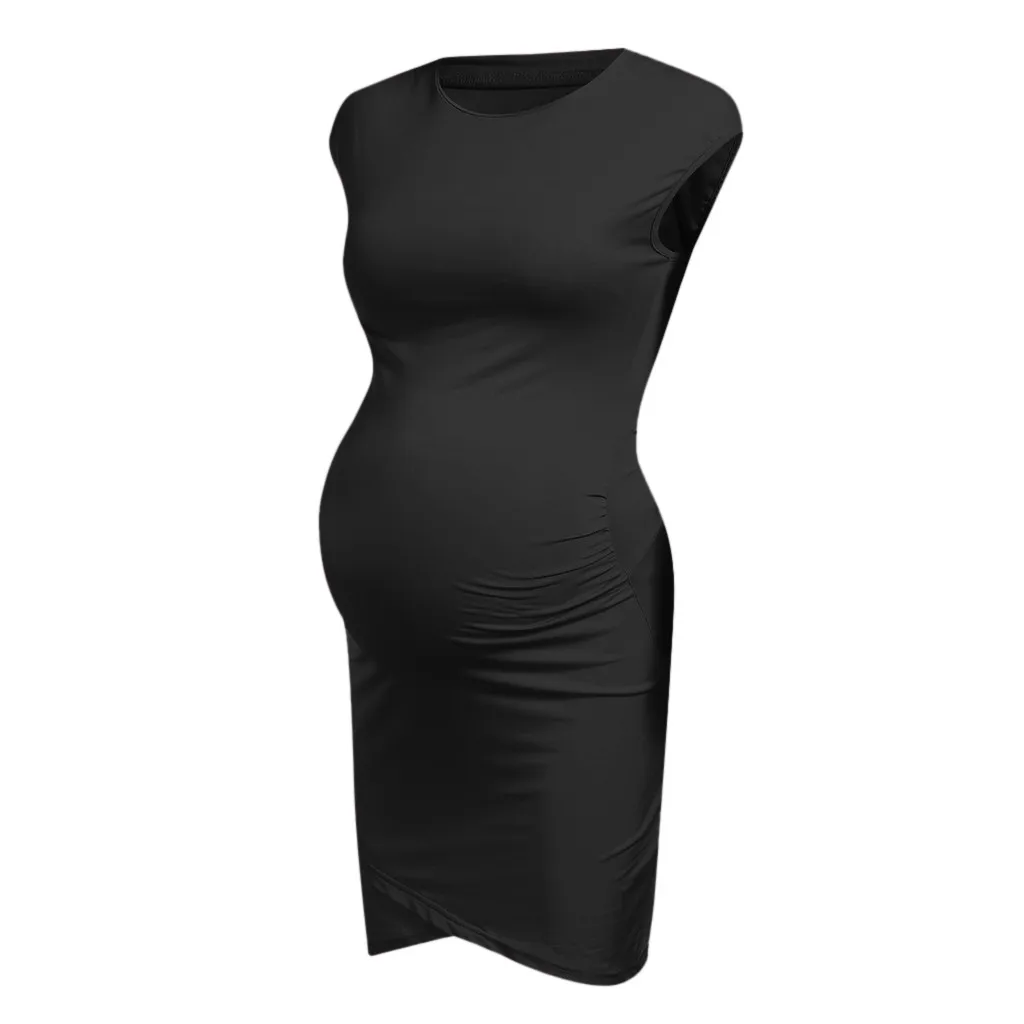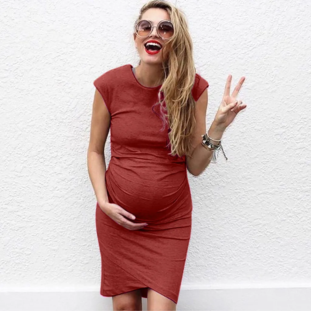 Летнее платьеДля беременныхЖенское модное однотонное повседневное мягкое удобное Платье миди без рукавов для беременных
