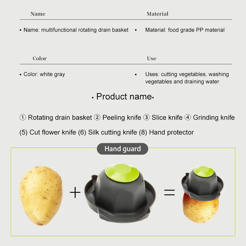Товары включают: Вращающаяся корзина для слива + нож для очистки овощей + нож для резки + шлифовальный нож + нож для резки цветов + резак для проволоки + защита рук Особенности: 1. Двухслойное разделение, легко чистить 2. Многофункциональность может использоваться в качестве кухонного ножа, разделочной доски и раковины. После получения товара, все друзья-покупатели, если у вас есть недовольство или вы не понимаете, пожалуйста, свяжитесь с нами, прежде чем мы постараемся сделать все возможное, чтобы дать вам удовлетворительный ответ и хорошее решение. Хорошая репутация трудно получить. Я очень ценю это и надеюсь получить ваше понимание и поддержку! Искренне желаю вам счастливого путешествия, чтобы купить товары на нашем заводе. Доставка: Доставка в течение 7 дней, защита продавца в течение 35 дней, возврат средств в течение 15 дней.