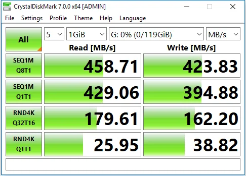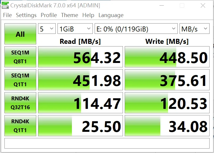Скорость чтения Макс до 480 МБ/с.Скорость записи Макс до 420 МБ/с.