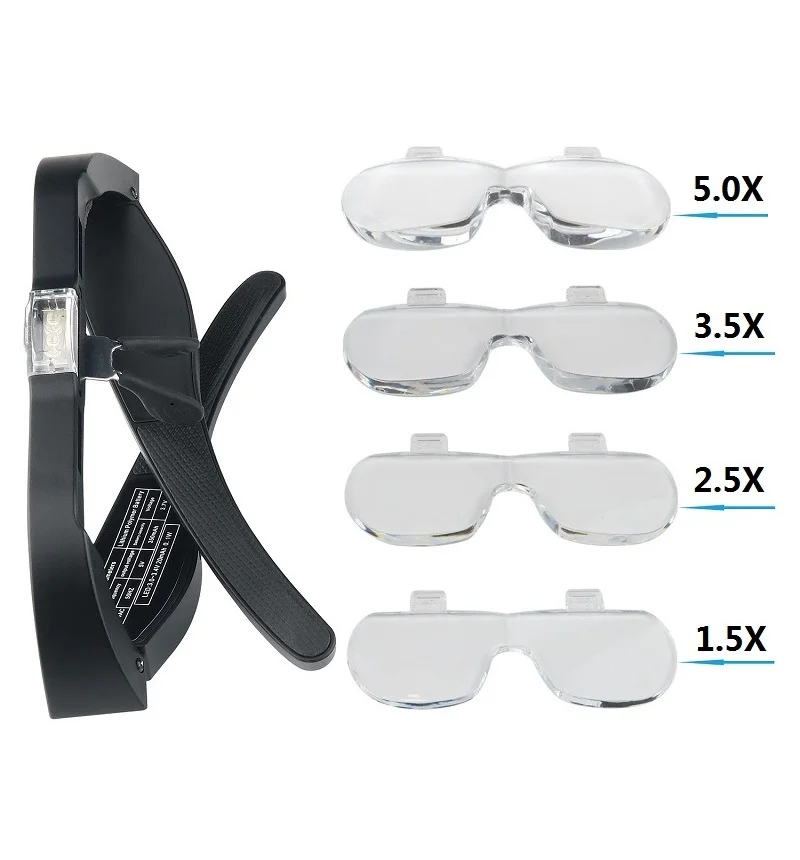Стекло es увеличительное стекло головная повязка Лупа USB зарядка 2 светодиодный светильник 1,5/2,5/3.5X/5X 4 шт. стекло es линзы очки для чтения