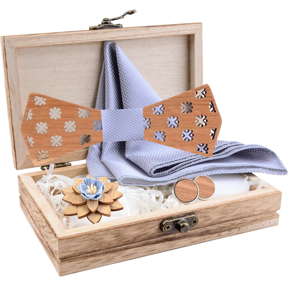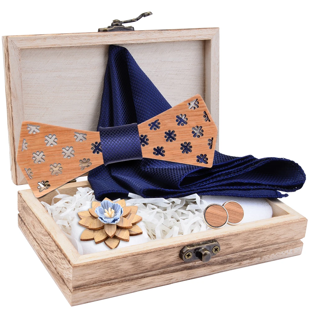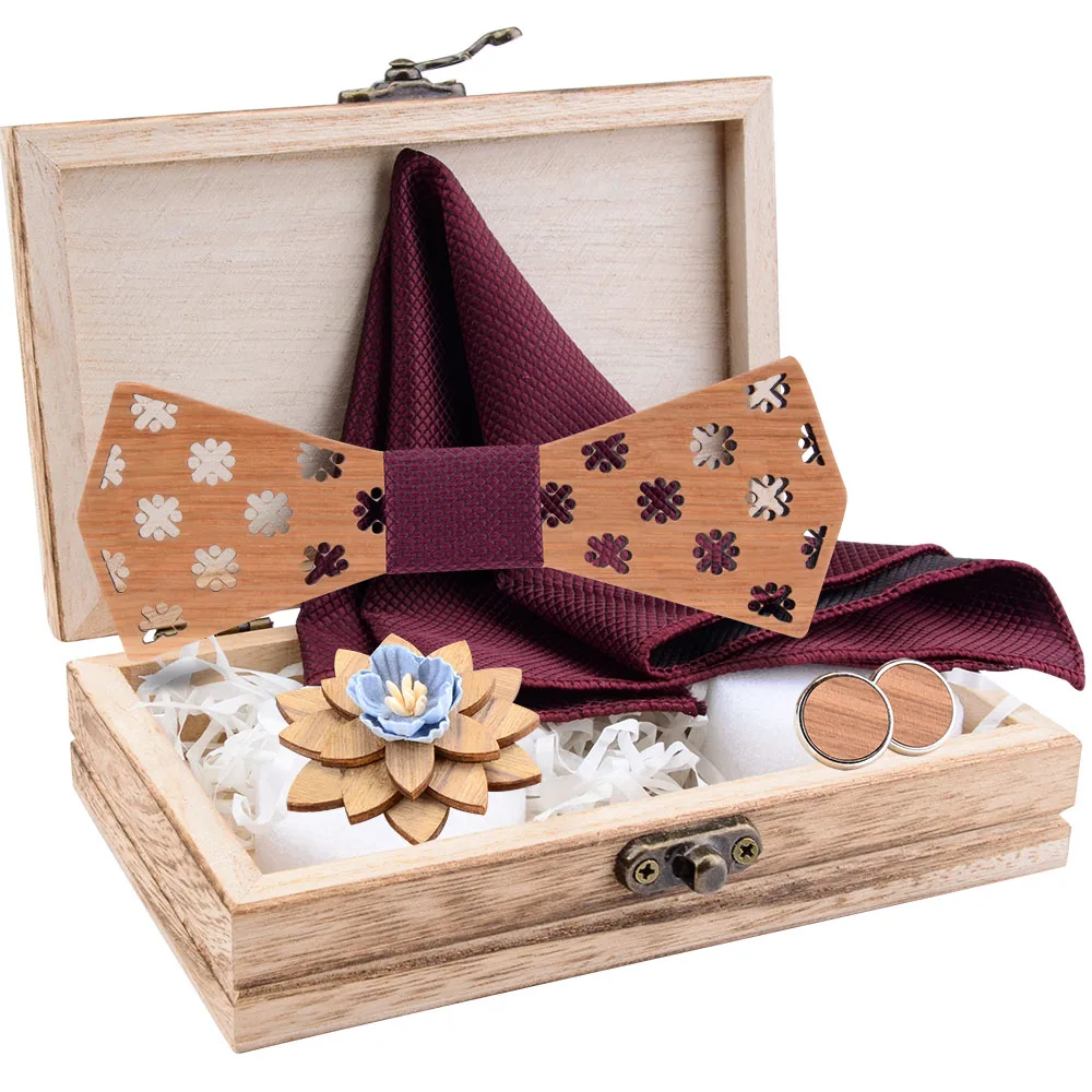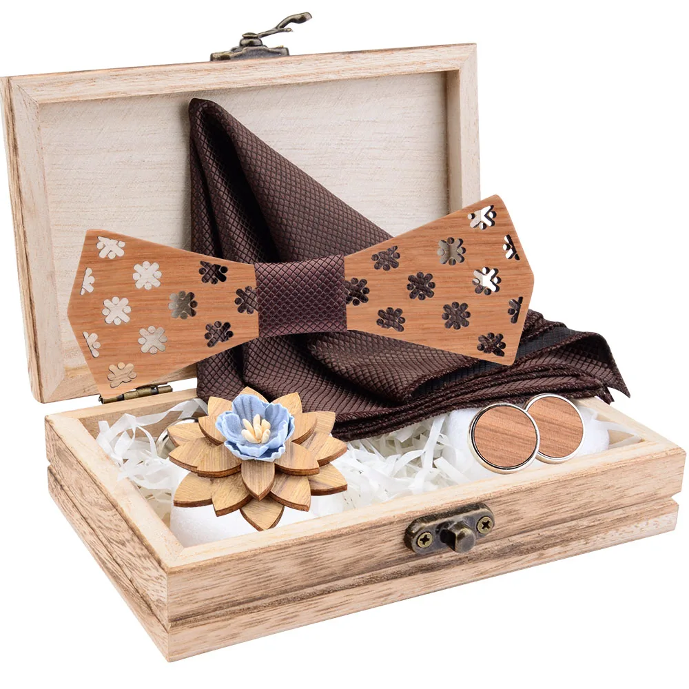 Новая Мода Пейсли деревянный галстук-бабочка для мужчин Свадебный Карманный квадратный брошь запонки бантик наборы с коробкой костюм деловые галстуки