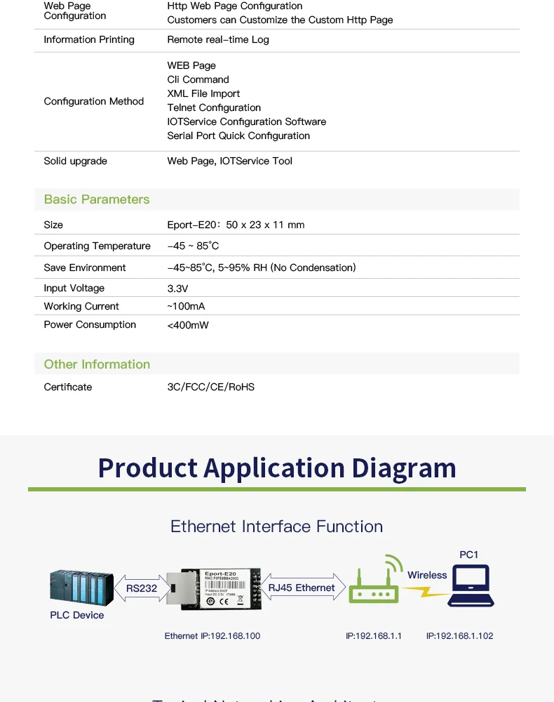 Eport-E20 is a fully self-contained small form-factor, most compact, integrated solution, which provide a serial interface to Ethernet connectivity to web enable any device,Eport-E20 can be simply accessed and controlled over the Internet.