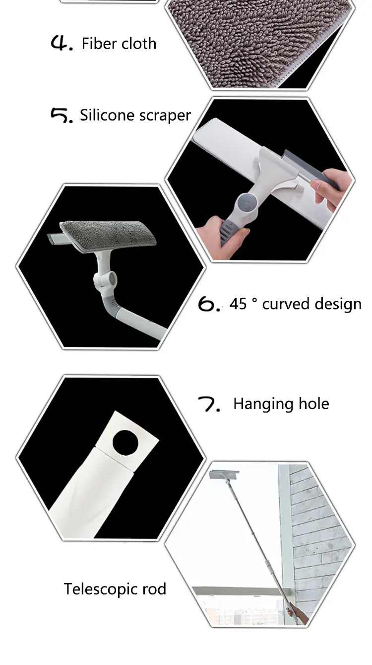 Инструмент для чистки окон дома, телескопический двусторонний скребок для мытья окон, щетка с длинной ручкой, стеклоочиститель с волокнистой тканью
