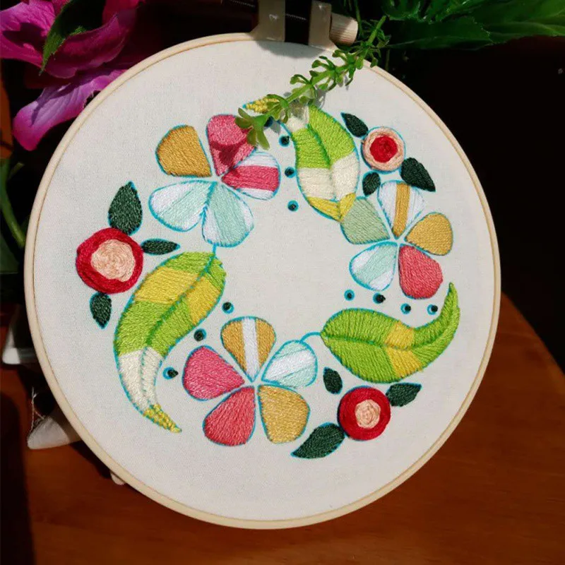 Посылка включает в себя:1 ткань для вышивания, 1 карточка для рукоделия, 2 рисунка, 2 вышивальных стежка, 1 вышивальный обруч, 1 Вышивальная нить
