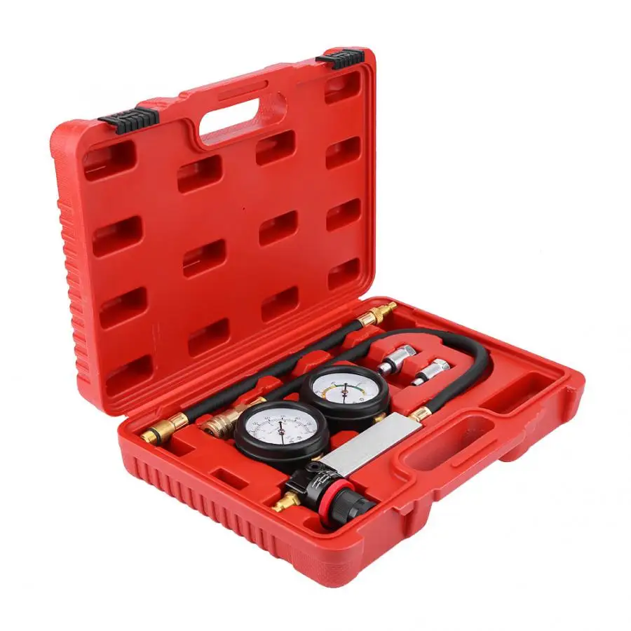 Это высококачественный TU-21 детектор утечки цилиндра, включая двойной измерительный прибор, 2-1/2 "датчик входного давления, быстроразъемный соединитель, калибровочные весы 0-100PSI, 12 мм, 14 мм адаптеры свечей зажигания, регулятор воздуха и чехол для переноски.