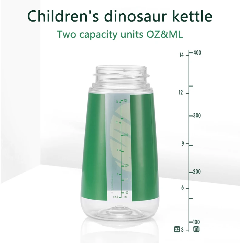 Название продукта: детский чайник с динозавром Ёмкость: 450 мл Температура термостойкости: от-5 ℃ до + 90 ℃ Материал: Тритан, ПП, силикон Размер: 80*77*189 мм
