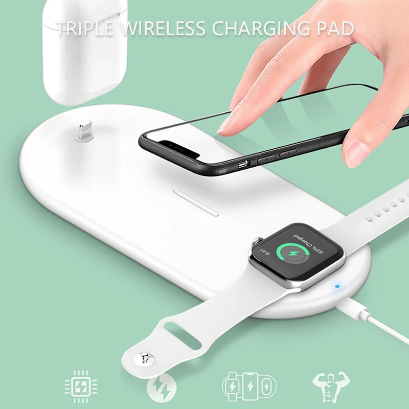 3 в 1 Беспроводное зарядное устройство для iPhone 11 11pro Samsung S8 S9 портативная зарядная станция для Airpods зарядная док-станция для iWatch 5 4 3 2 1