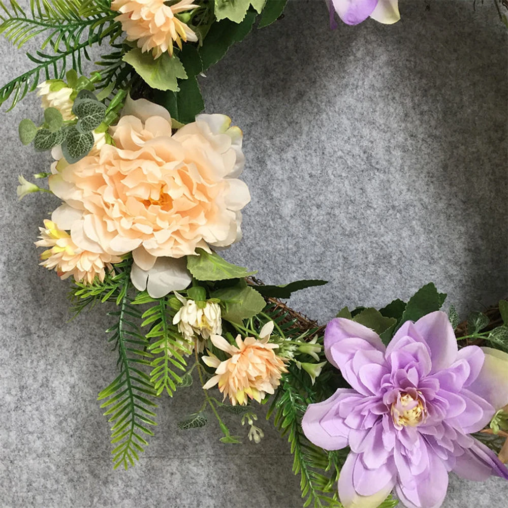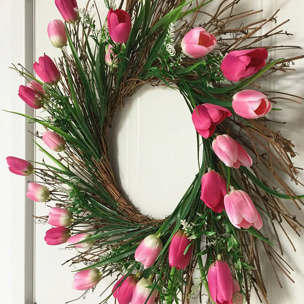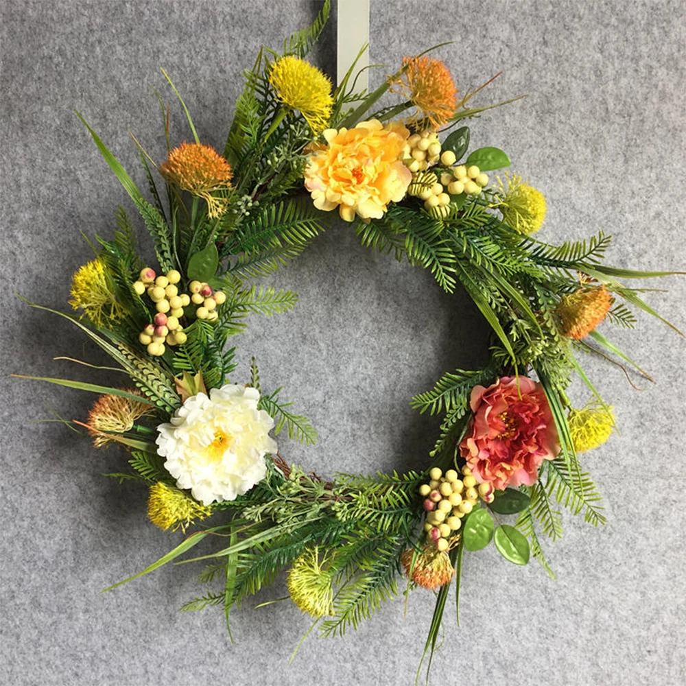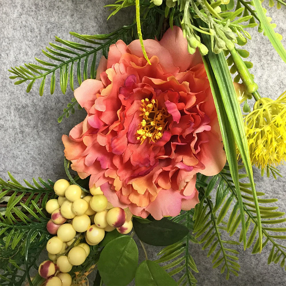 -Этот полный венок изготовлен из ярких шелковых цветов и ягод, идеально подходит для Пасхи или всего сезона