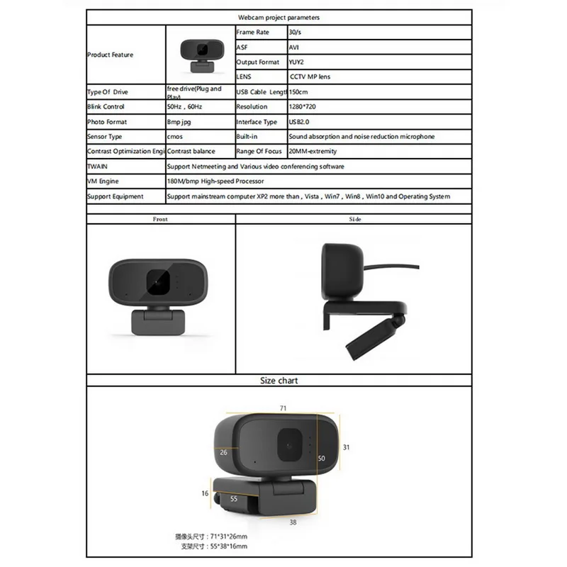 <HD веб-камера: HD 720P 30fp/S обеспечивает деликатное качество видео и отличное изображение