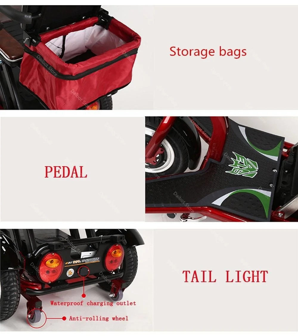 Характеристики: двойная задняя Дисковая тормозная система, светодиодный фонарь, задняя Кнопка заднего фонаря, сумки для хранения.