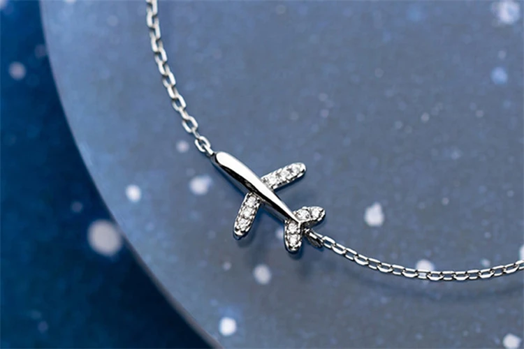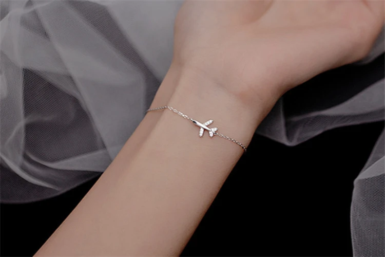 Pretty Trendy Luxury Airplane Design Adjustable Bracelet 925 Real Silver White Cubic Stones Braclet Link Chain Women Accessories