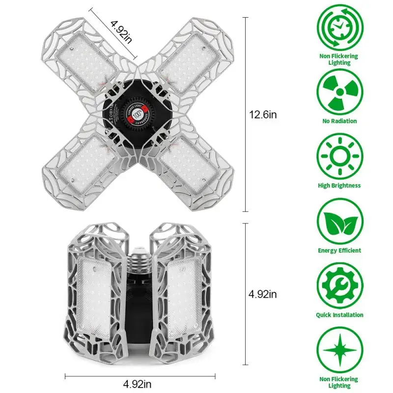 -Гуманизированный Регулируемый дизайн, светодиодный светильник для парковки-уникальный светодиодный светильник с широким углом поворота для гаража, регулировка крыльев на 90 градусов который может иметь идеальный гаражный светильник, изгиб распределения в соответствии с вашим приложением, это сделает светильник покрытым на 360 °. Идеально подходит для гаража, склада, мастерской, гаража, подвала, автомагазинов и т. д.