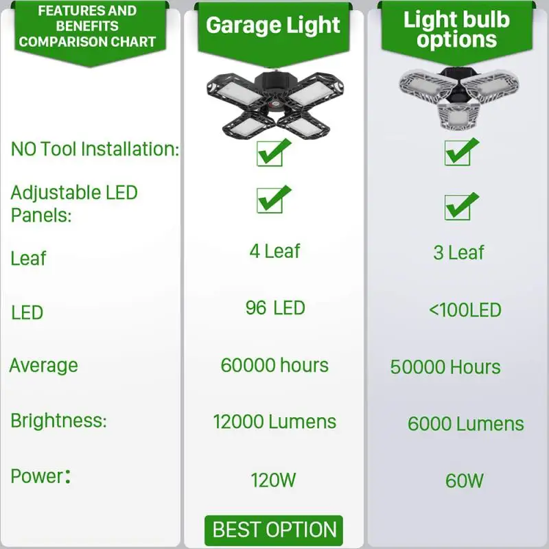 -Прочный и долговечный срок службы 120 Вт, светодиодный гаражный светильник, лампа-этот светильник 60 Вт, изготовленный из безопасного высококачественного алюминиевого сплава, стабильный и прочный, с максимальной производительностью, более 50000 часов постоянной времени выполнения делает стоимость обслуживания резко сократить