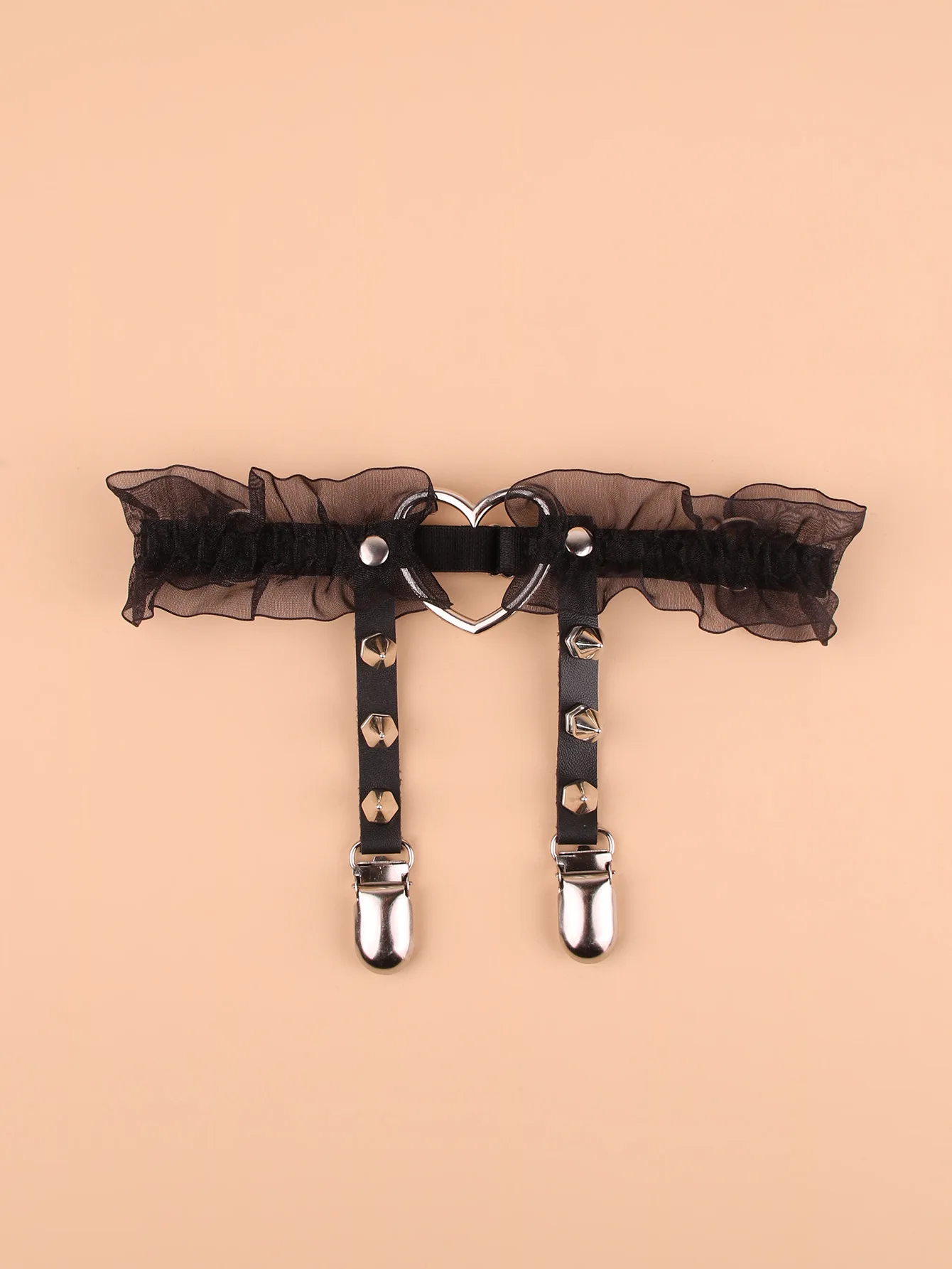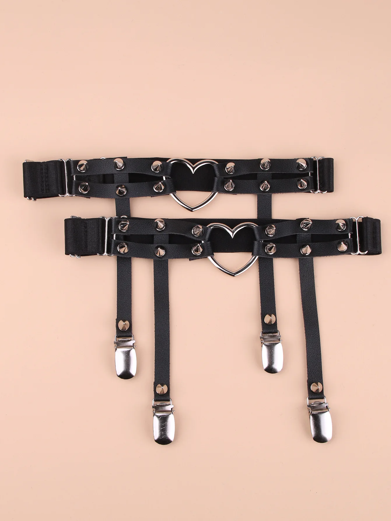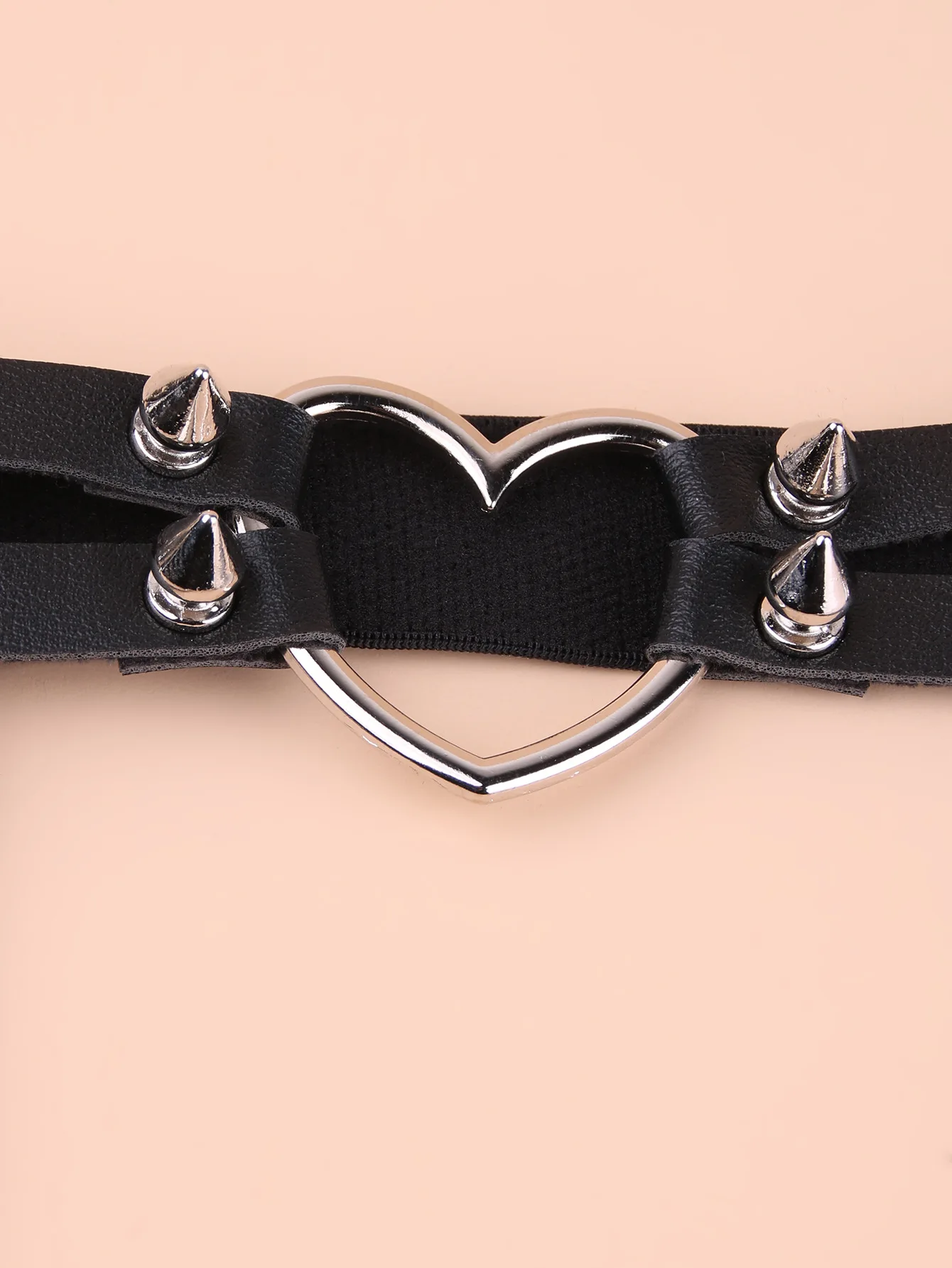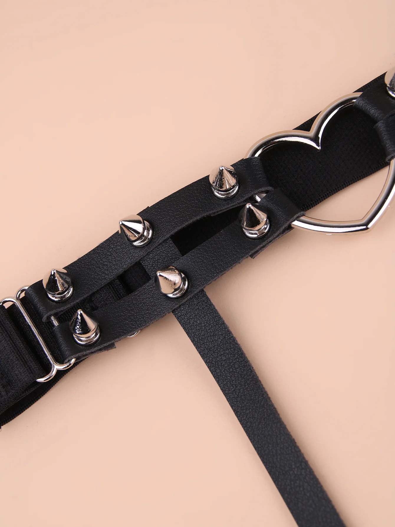 Новейшая Женская Сексуальная эластичная цепочка в стиле Харадзюку с сердечками, подвязки, регулируемые, косплей, Спайк, ПУ, панк, кольцо, подвязка Материал: ПУ + металл Widthh: 3,5 см